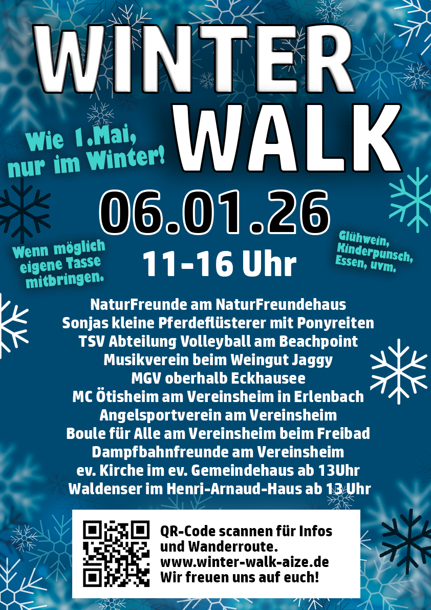 „Aizemer Winter Walk“ erfährt eine NeuauflageMehrere Vereine und Organisationen beteiligen sich an der Winterwanderrunde in und um Ötisheim Im